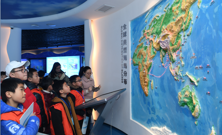 圖2 參觀海島研究中心規(guī)劃展示大廳